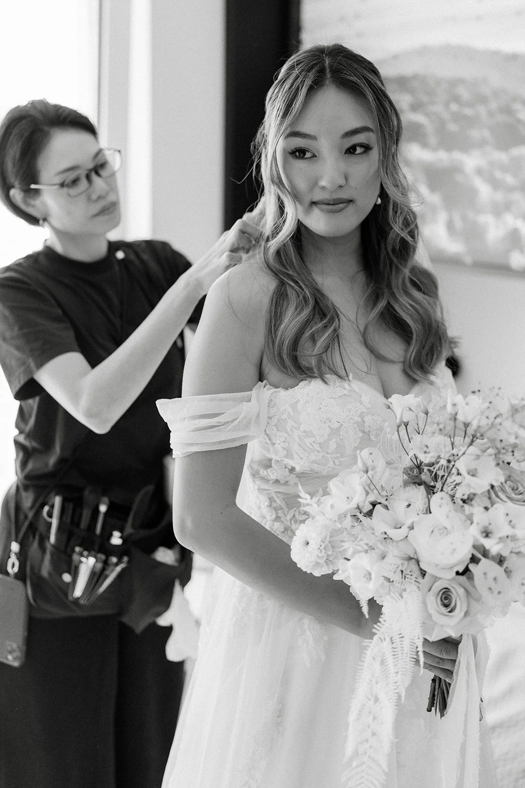 A serene, unobtrusive styling experience. The bride feels calm, confident, and beautifully at ease.